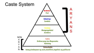 Ang mga lungsod sa lambak ng Indus ang pinakabagong tuklas na mga sinaunang sentrong kabihasnan sa kasalukuyang panahon. Mga sinaunang kabihasnan sa india. Ang sistemang caste ay isang uri ng social stratification na ginamit ng mga Hindu sa pag-aayos ng kanilang sistemang panlipunan.
