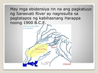 HeograpiyaatMapangKabihasnangIndus Umunlad ang kabihasnang ito at tinawag na mga lungsod ng Mohenjo-Daro at Harappa 3. Ang kabihasnang indus ay umusbong sa paligid Ng Indus river particular sa Pakistan. Samakatuwid ang Mesopotamia ay nangangahulugang lupain sa pagitan ng dalawang ilog na inaakalang lunduyan ng unang kabihasnan.